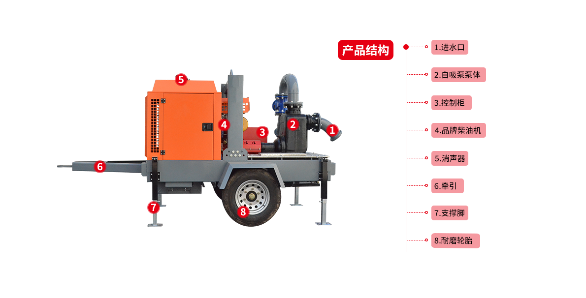 6)該泵還可以與移動(dòng)搶險(xiǎn)車(chē)進(jìn)行配套,以達(dá)到臨時(shí)排澇抗旱搶險(xiǎn)的目的。